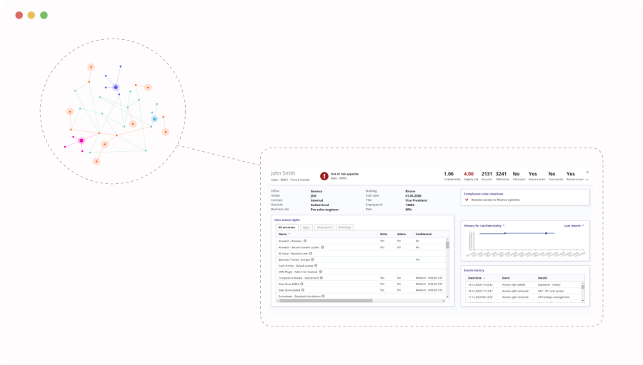 Modern businesses require agility: new services are offered, staff members are hired, leave or evolve to take new responsibilities, regulations and circumstances change. Risk management teams can not anymore rely on sole recurrent reviews and validation workflows: they need to be just as reactive as the business. Here comes PeopleRisk: the real time monitoring framework for all human operational risks.