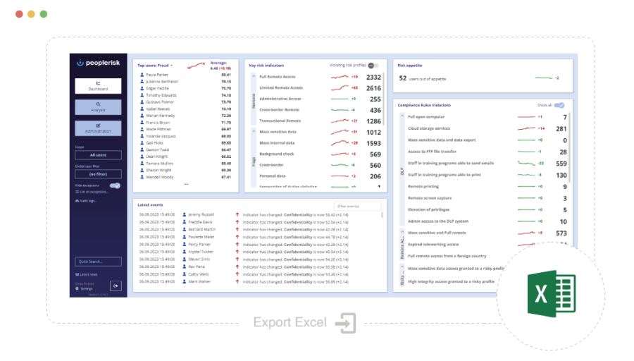 Export everythingEvery screen and table in PeopleRisk can be exported to Microsoft Excel for offline communication or reviews.
