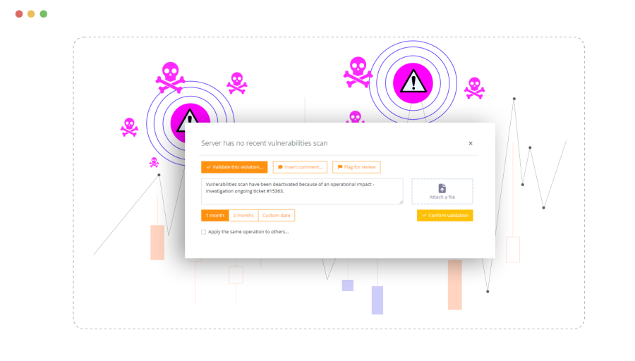 As exceptions happen, temporarily validate anomalies our violations with a clear audit trail and inventory of risk decisions, for further reference.