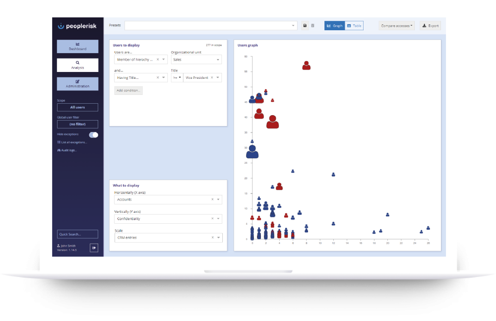 Now you immediately get results in PeopleRisk: immediately discover the top scorers or people in violation of a source, but also use our business user-friendly interface to: